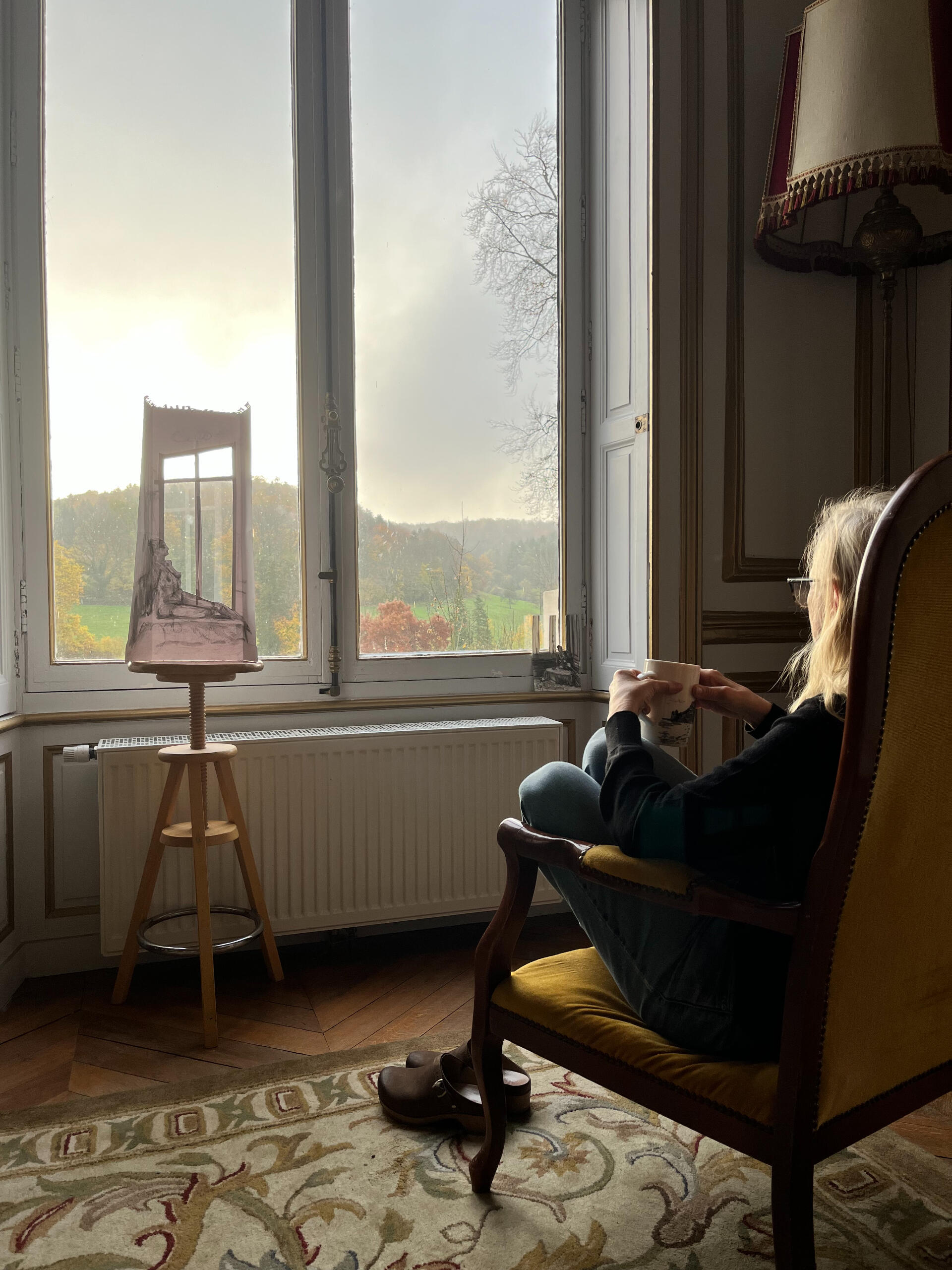 Working in and inspired by the artist residency at Chateux Orquveaux in France. I created site specific instatllations that were completed by the residents participation.